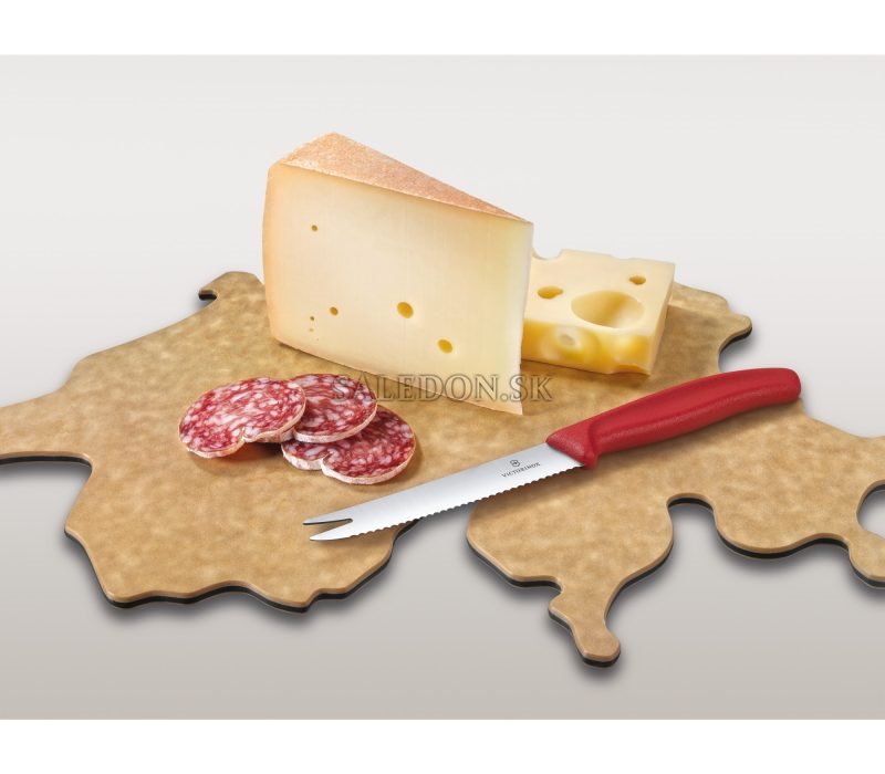 Originálna nárezová doska v tvare Švajčiarska v sete s nožom na syr. Ideálna zostava na prípravu a originálne servírovanie syrov, ovocia, zeleniny alebo salámov. Unikátny dizajn z kvalitných materiálov.