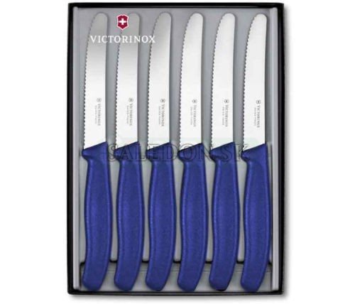 Súprava príborových nožov 6-dielna s polypropylénovými rukoväťami v darčekovom balení. Súprava pozostáva z 6 ks rovnakých príborových nožov s dĺžkou zúbkovanej čepele 11 cm. Nože sú vhodné do umývačky.