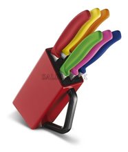 Súprava nožov v uzamykateľnom kufríku 17-dielna s polypropylénovými rukoväťami. Súprava pozostáva z 2 ks kuchárskych nožov, cukrárskeho noža, podberačky, ocieľky,lúpacieho noža, škrabky na zemiaky, vykrajovača s 2 naberačkami, 2 ks dekoračných nožov, špikovacieho noža, vykosťovacieho noža, filetovacieho noža, vidlice, kufríka a 2ks vložiek.